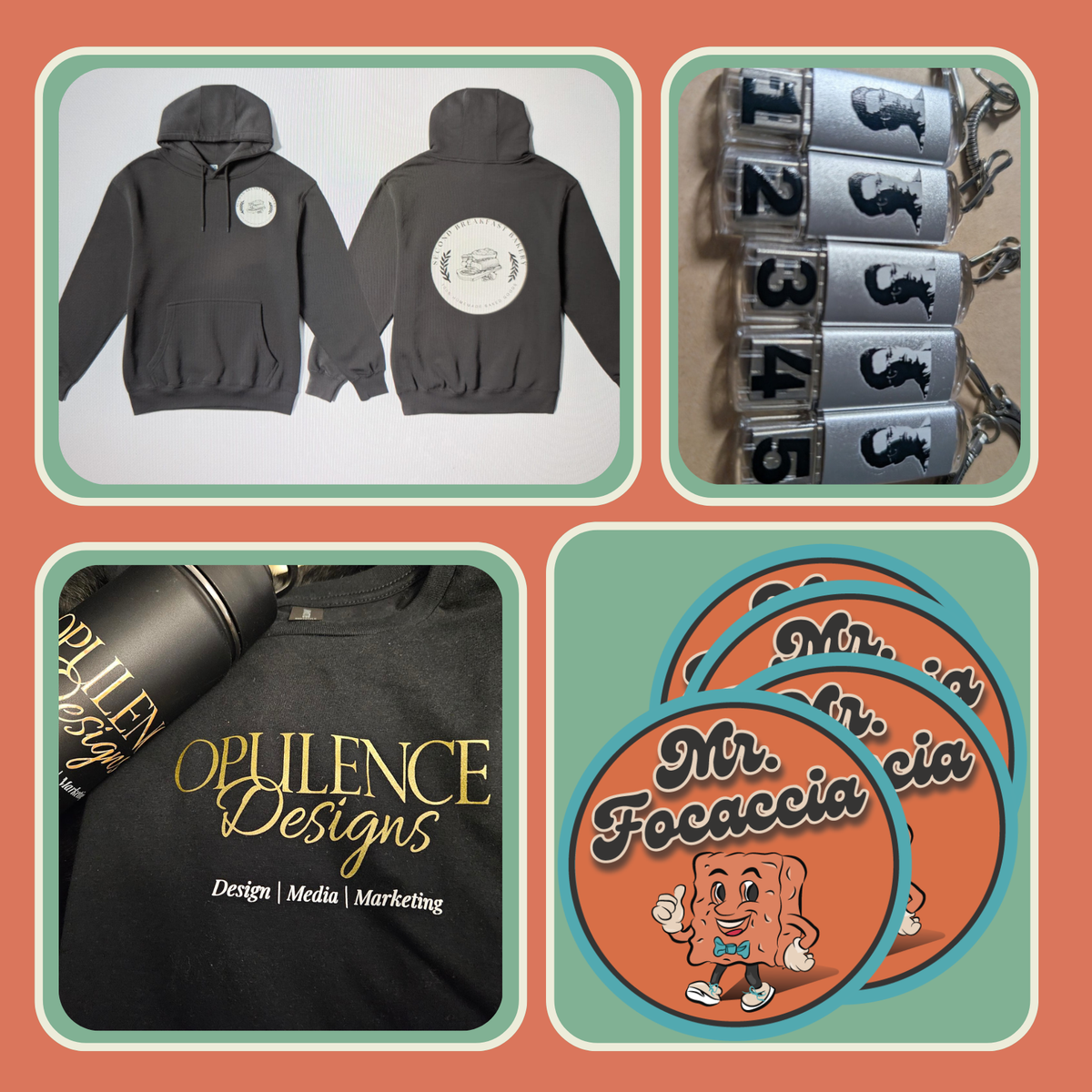Custom Apparel, magnets, buttons, water bottles etc..